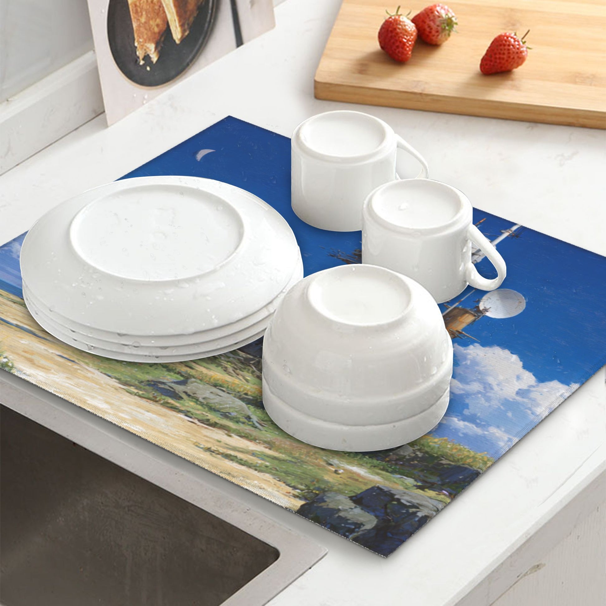 2-Pack Absorbent Kitchen Counter Mats โ Sci-Fi Coastal Signal Tower Print โ Fast-Drying, Foldable, Machine Washable โ 18 x 16 Inches