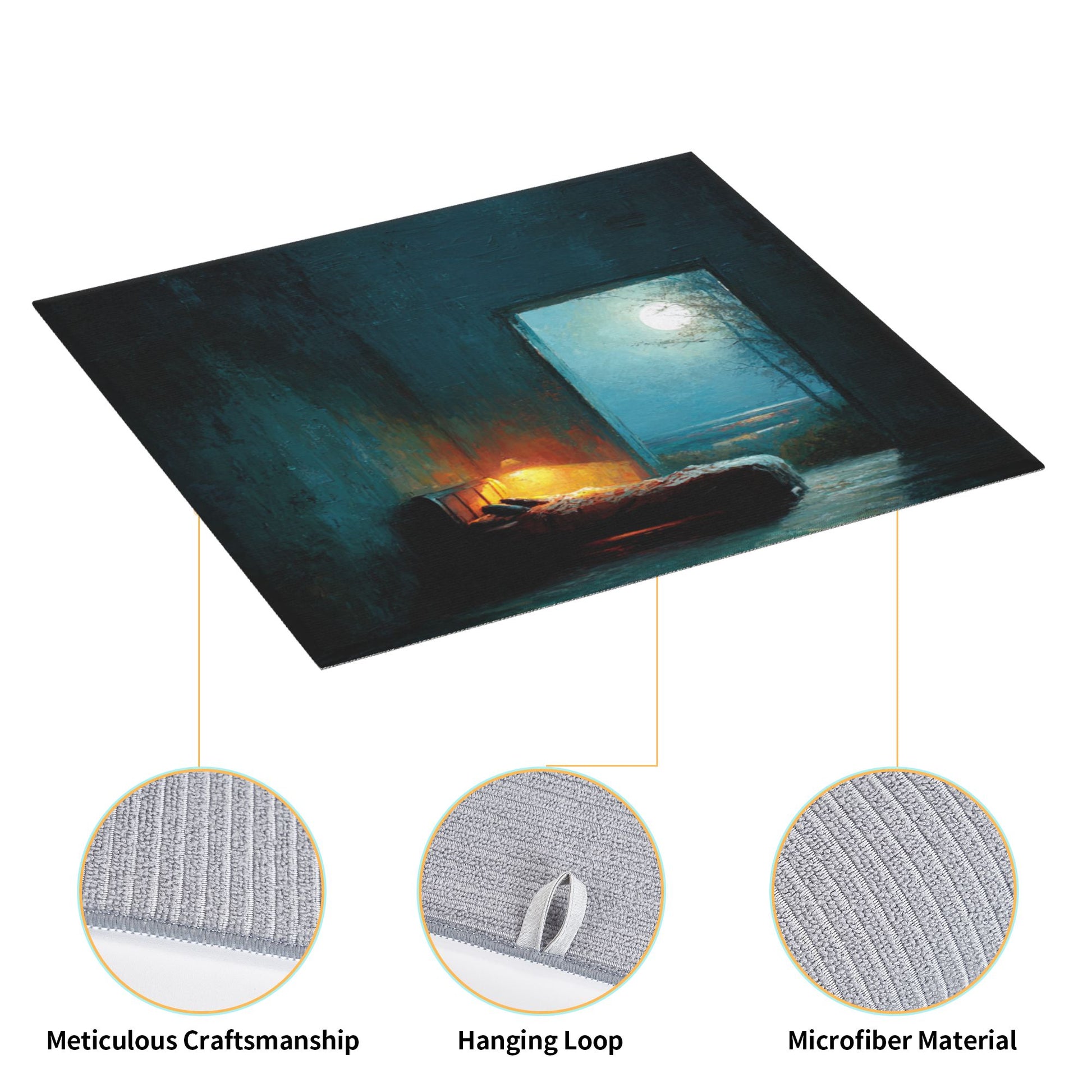 2-Pack Absorbent Kitchen Drying Mats – Artistic Moonlight Bedroom Design – Non-Slip, Fast-Dry, Foldable – Machine Washable – 18 x 16 Inches