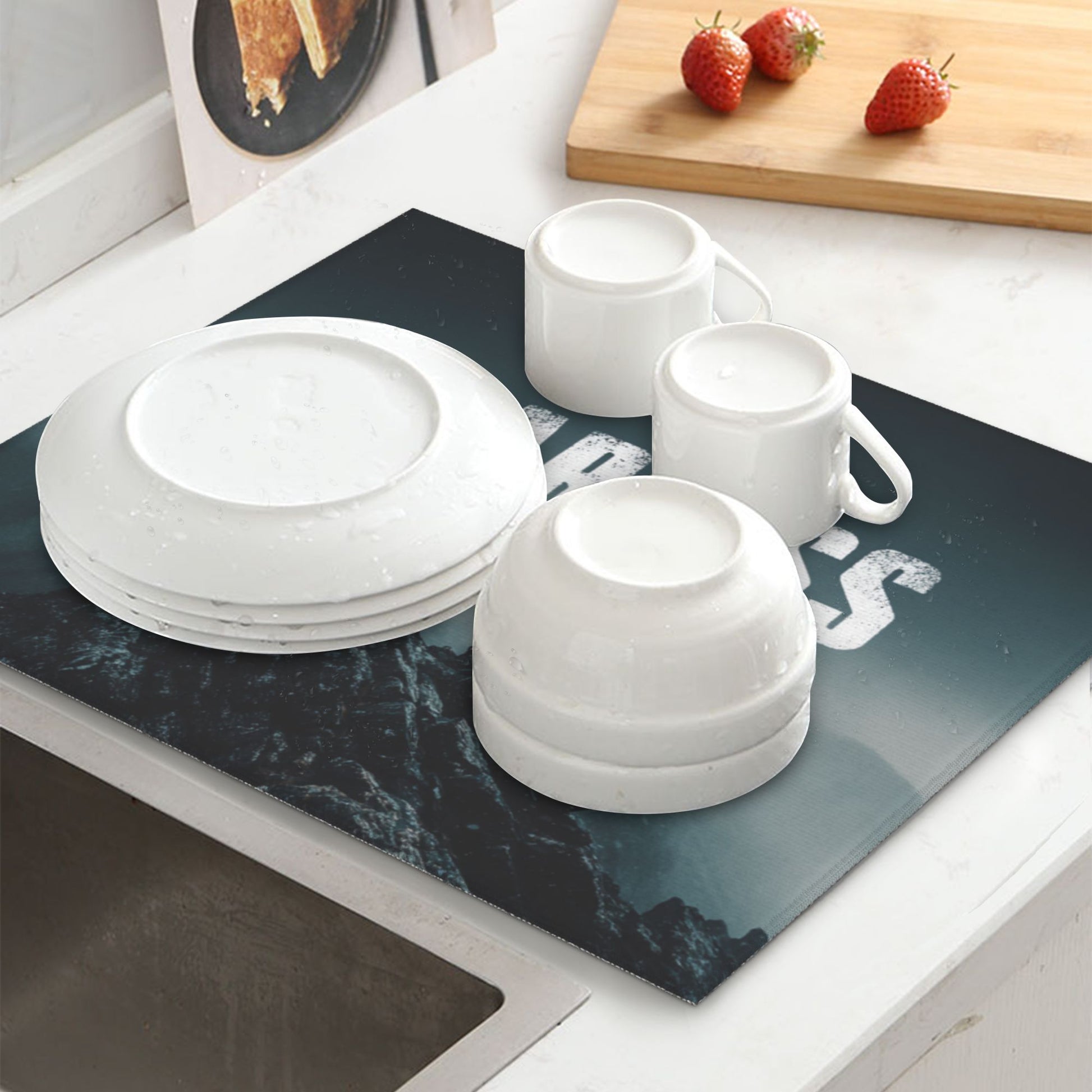 2-Pack Absorbent Kitchen Drying Mats β Mountain Explorer with Typography β Quick-Dry, Non-Slip, Washable β 18 x 16 Inches Each